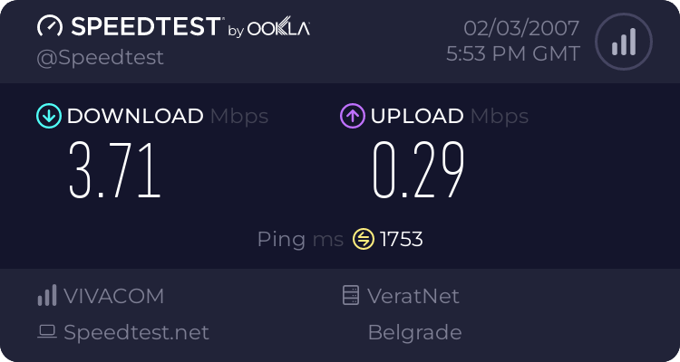Бе и аз съм към Мегалан (тарифа 25 лв.), ама тия 5000 kb/s към Нови Йорк не можах да ги стигна днес... 3800 макс... :-(