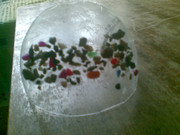 Самия му грунд е от такива камъчета и затова го е налепил така. Ако сложи друг, няма да се връзва. Поздравления за идеята  *THUMBS UP*
