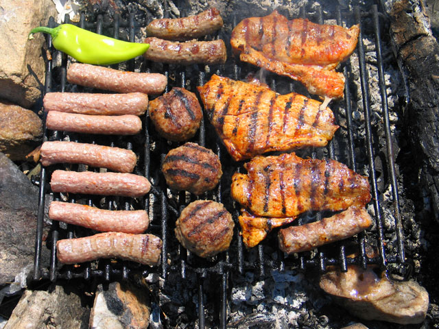 Виж първата снимка, бе серсемино! Има сланинка.. има и кебапи даже! Бобецът требе да се блажи..  *DRINK*