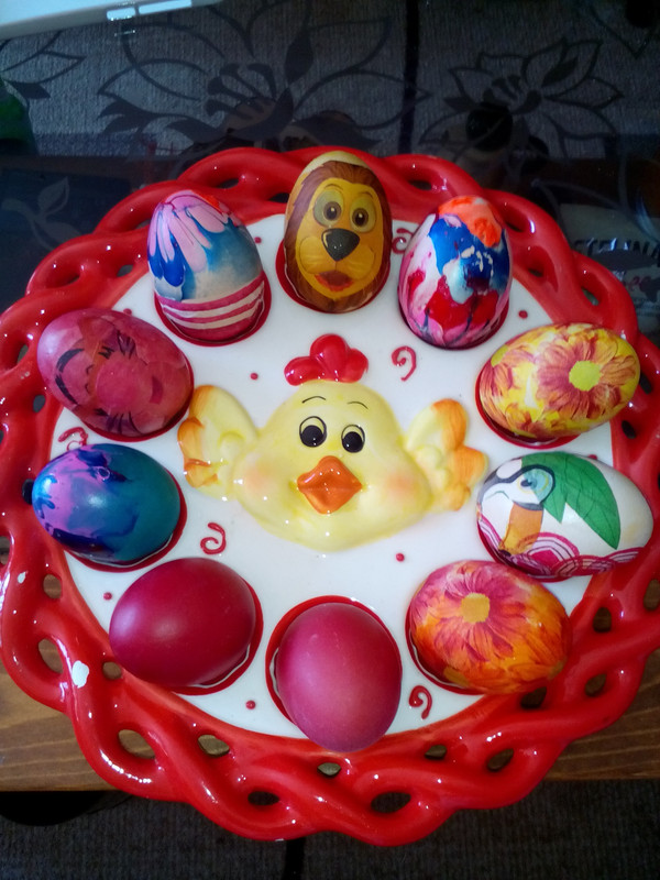 Като гледам доста колеги са боядисали пъдпъдъчите яйца с петната.Така също е ефектно,но ако искате разнообразие петната се махат за секунди с грапава гъба,вода и малко веро.