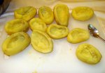 Няколко картофа се сваряват почти до омекване, изваждат се и след като изстинат се издълбават с ножче и лъжичка.