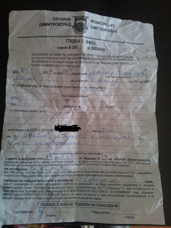 Спряха ми новата книжка за 2 неплатени фиша от последните 2 години :). Попитах това ли е всичко, което трябва да платя?