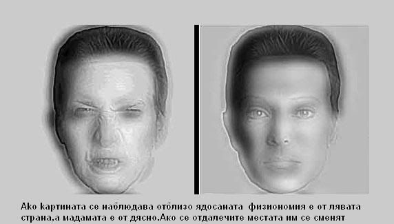 Taзи е класика зяпате я около 30-40сек. и след това поглеждате към някаква гладка повърхност едноцветна(бяла стена,лист и.т.н) и започвате да мигате с очи,и ако сте вярващ ще видите господ :lol: