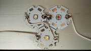 Да добавя и как изглеждат използваните от мен диоди. Едноватовите бели и цветни сам съм запоявал върху подложките. Самите подложки съм лепил за радиатора със термопроводящо лепило http://www.elimex.bg/product/68055/termoprovodyashto-lepilo-10gr.html