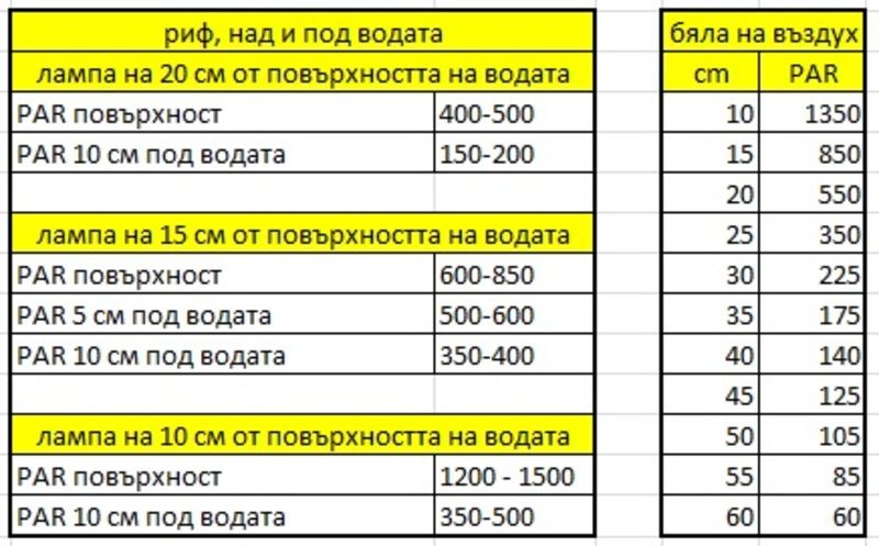 Само да добавя, че площта, която осветява тази лампа с този висок PAR (количеството светлина, използваема от растенията за фотосинтезата)  е доста малка, това са измерванията точно под лампата. Бих казал че площта, която се осветява с 80% от този PAR е кръг с диаметър около 6-8 см. Предполагам, че за да се поддържа този висок PAR на по-голяма площ, ще трябва поне една такава лампа на всеки 150 кв см (12х12 см) водна площ. Т.е. за малкото аквариумче което е в стаята на сина ми с площ 30х50см ще ми трябват десетина такива лампи, което прави над 320 лв, без да смятаме допълнителните диоди, ако искам да направя морското изпълнение. Вероятно чисто самоделно изпълнение ще излезе малко по-евтино, но не съм много сигурен.