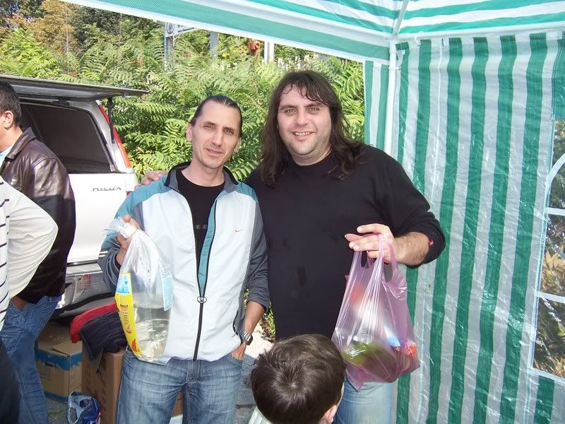 Този път имах чувството, че пазарът беше доста по-голям от пролетния. Имах идея да разменим някакви координати с тези, които ще идват, както бях писал в една друга тема, за да можем дори и за малко да се видим на живо и по едно здрасти да си кажем, обаче ни притисна времето и ние още към 8:30 бяхме там, понеже много неща трябваше да се вършат в Съботния ден. За това предварително не се разбрах с никой, че идеята беше на бързо да метнем по едно око и да се изнасяме. Не знам колко сме бързали ама в 11:00 още бродехме между сергиите  :-D. Буквално за съвсем малко се завъртяхме покрай щанда на Big Gonzo и си взехме растения и едни таблетки за подхранване. Аз набързо успях да му кажа, че ние сме Шуменската група и изчезнахме по задачи. Много съм доволен от Ехинодоруса, който си взех от него, понеже коренно промени визията на аквариума и изпъкна много добре на фона на останалите ми треволяци. Харесах си още много ниски растения, обаче пустото CO2 не съм го довършил и не ми се рискуваше. Купих си нагревател 250 вата на Aquael, със 7 лева разлика в цената от магазинната в Шумен. После се оказа, че тази фирма, от която го купих снабдява и тези магазини тук. Искам да кажа, че за мен този пазар беше много полезен и някои неща наистина могат да се намерят доста по-изгодно. Не си тръгнахме празни както казах, дори единият от нашата група си купи 40 литров аквариум за 175 лева (от тези, които се виждат горе на снимката), с всички работи вградени в него. Голям проблем имахме с излизането от зоната на пазара, понеже на паркинга, на който сутринта си нaмeрихме лесно места, бяха решили, че няма нужда да оставят място за излизане и стенаха големи панаири. Не знам другите които сте дошли по-късно къде паркирахте и имахте ли проблеми но това всъщност е неизбежно като има толкова хора на едно място  :-)