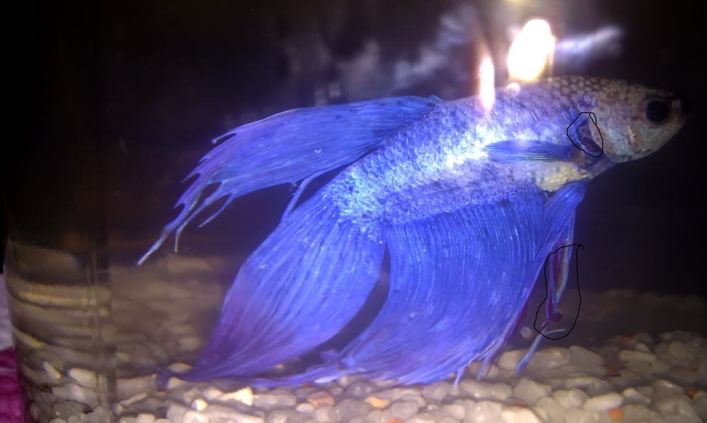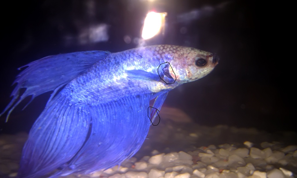 Нямам намерение да се занимавам с теб повече тъй като и рибката умря днес, но ще оградя местата който се виждат от снимките, предните и плавници освен че бяха слепени бяха и червени и нагнили както и под тях корема имаше голямо бяло петно. Лично аз не видях да има нагревател при бетата, а и ми стана интересно защо хвана вода от долния аквариум, а не от аквата на бетата след като имаше толкова празни клетки, още там рибата изживя шок според мен.Та както и да е вече рибата е мъртва така че не мисля да продължавам спора казах моята страна.