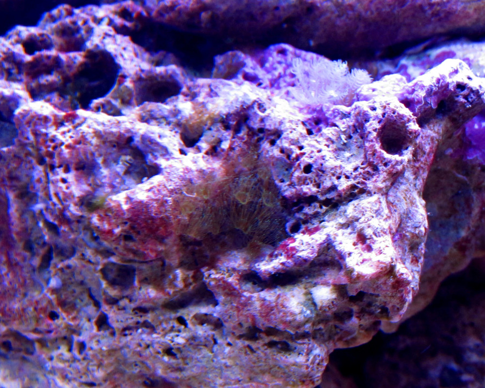 Това бялото на първите снимки е безобидна спонга, но на последната снимка, както сам предполагаш е hydroids. Ако имаш възможност извади камъка и го премахни механично.