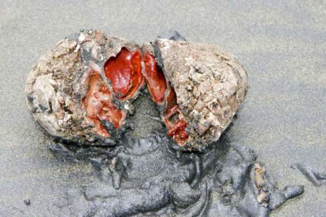 Pyura chilensis (кървав камък) без проблем може да мине за обикновен камък на плажа.