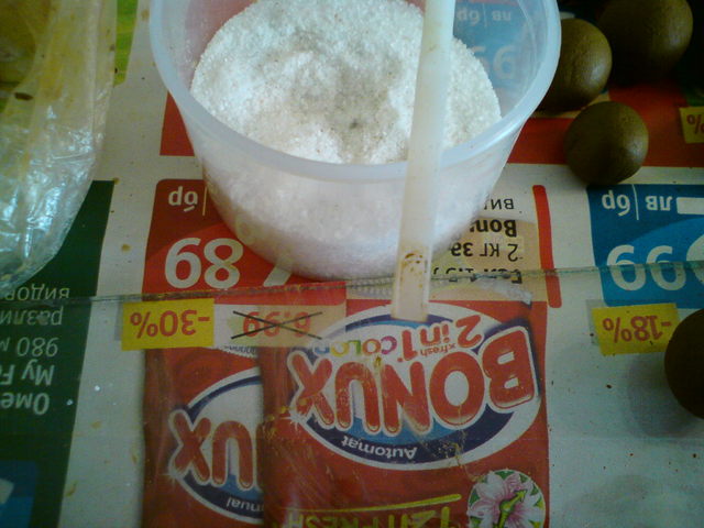 После добавих грунд на мястото където беше фона. Можете да напълните пластмасова бутилка с нов грунд, обръщате я наобратно в аквариума и като я местите добавяте грунд където е необходимо. При изтичането на грунда бутилката се пълни с вода и увлича всичката мръсотия от новия грунд вътре в бутилката, после я запушвате и изхвърляте мътната вода която вече е вътре в бутилката. По този начин в аквариума не попада никаква мръсотия.