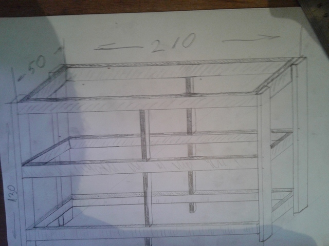 Абе на мен така от скицата-чертеж ми прилича да е от дъски сковано  и както е нарисувано+ тези средни подпорки е грозно   и  някак пречещи  на цялостния изглед на аквариумите. Освен ако това не са развъдни аквариуми, където естетическият изглед е без значение.