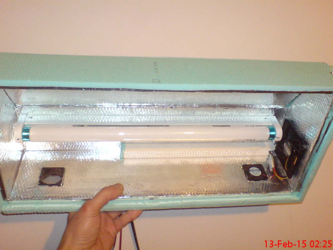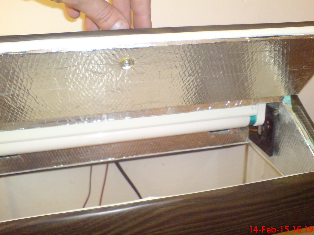 И моя е от фибран. Капака си е достатъчно здрав. Вече осем месеца няма никакви проблеми. Монтирани са три луминисцентни лампи по 18 вата, от тези готовите шини. Винтовете за дърво не държат във фибрана и се изваждат. За това осветителните тела трябва да се хванат с болтчета, шайби и гайки през целия фибран. Или като в моя случай с любимото крепежно средство на българския майстор - техническо влакно. Демек с тел   :-D