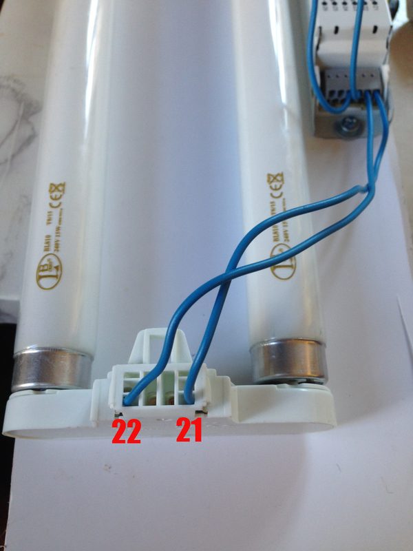 Имам нужда от малко помощ за свързването на лум. лампи. Имам 2 лампи по 15 вата и електронен баласт за 2х18. Човека от магазина каза, че става. Входа на баласта ми е ясен, но изхода от него и входа в самите фасунги, не. Прилагам снимки на баласта и фасунгите. Не знам кои дупки на фасунгите да използвам. Благодаря ви, предварително.