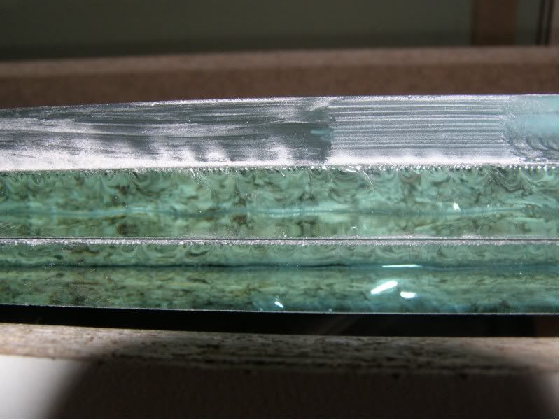 Според мен не са матирани, просто  от светлината изглежда така. Аз мисля, че не би трябвало да влияе на здравината на шева, защото по принцип стъклото е много по-гладко от самия кант.