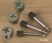 Закрепване на отделните елементи. Изборът на крепежи- обикновени и мебелни, както и методи на монтаж, е много богат. Класиката в близкото минало, с актуалност и сега, е дюбелирането. Използват се дървени дюбели, които нормално се закупуват. И в добавка- лепило за дърво. Методът понася сравнително добре натоварване, но изисква и прецизна работа- при напасването на дюбелите. Основната трудност идва от точността на разположение на отворите за дюбелите и тяхното добро оформяне като размер. За точно позициониране на отворите може да се използва специален водещ елемент за свредлото- кондуктор, частично или изцяло метален. Изработва се като ,,П"- образна скоба с точно разпробит в нея отвор за свредлото- и като диаметър, и като разположение. Отбелязването на местоположението на отвора върху панела също трябва да става прецизно. Ако не се използва кондуктор, желателно е разпробиването да стане на два етапа, за да се избегне т.н. бягане на свредлото. Първоначално си използва свредло с диаметър не повече от 1,5- 2 мм. След това се повтаря със свредло, което оформя същинският отвор. Ако се пробива първоначално с по- голям диаметър, следващото свредло има опасност да ,,разбие" същинския отвор- увеличава се доста диаметъра му спрямо желания. Тези операции е желателно да се отработят на някакво пробно парче от същия материал, като се очаква, че финалното свредло трябва да е примерно с 0,2 мм по- малък диаметър от отвора, който желаем да получим. При добре изработен отвор дюбелът трябва да се набива плътно по цялата му дълбочина. Ако се работи с кондуктор и едно свредло, то може да бъде със специално заточване отпред- с водещ връх и хоризонтални режещи ръбове, а не под конус. Не е проблем купуването на комплекти от така заточени свредла. При разпробиването трябва да се следи дали отделилите се стружки излизат нормално- обикновено се налага свредлото да се вади на няколко пъти, преди да се постигне нужната дълбочина. В противен случай може да се получи спичане на отделените стружки вътре в отвора и свредлото, ако е по- тънко, да се счупи; или пък отвора да се разбие. Дълбочината на свредловане трябва да е съобразена с общата дължина на дюбела. В елемента, който ще се сглобява втори, отворът за дюбела е желателно да остане по- дълбок с няколко милиметра- веднъж да не се получат неприятни изненади при монтажа, т.к. се набиват няколко дюбела едновременно, и второ в кухината да остане излишъка от лепило, което предварително се вкарва в отвора. По възможност да се работи с лека електрическа дрелка, която има възможност за регулиране на оборотите. Високи обороти при такова разпробиване почти винаги водят до брак.