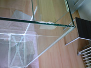 Материали: Стъклата поръчах в най обикновена стъкларница - дъното 8 мм., останалите стени - 6 мм., като се застраховах с две разпонки за дъното и две за тавана, със диагонални засеци за да се обособят отвори за кабели маркучи и други работи.