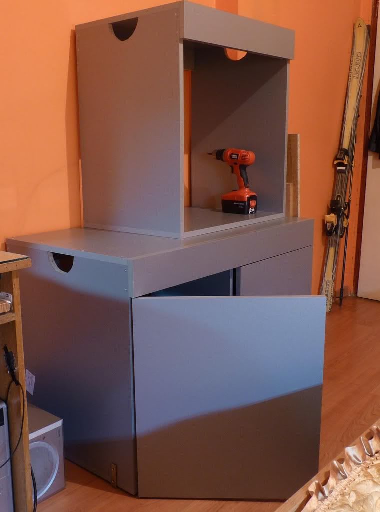 Горното ще е за около 120л,а долното шкафче за 250л.Не са завършени,но бърза работа нямам.