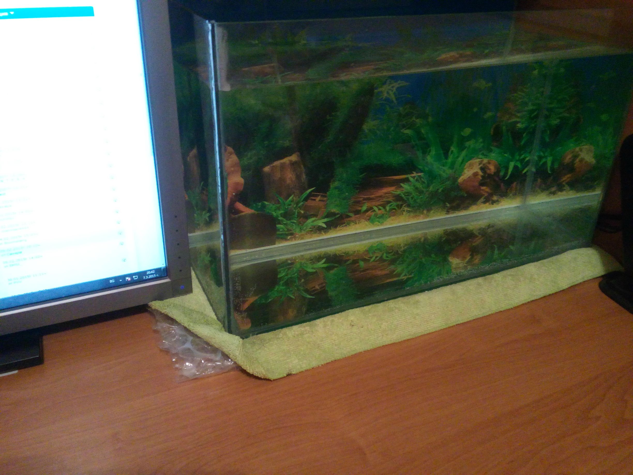 Аквариумът е 30л. (П.С.: колко тежък става един подобен аквариум?)