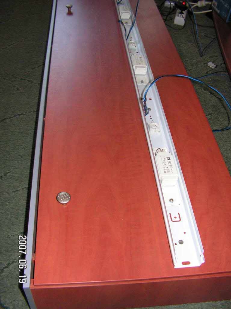 Да, дроселите останаха върху капака и ще бъдат покрити с оригиналната ламарина от тялото. Ще го покажа в завършен вид, когато съм готов. Първоначално смятах да използвам 3 или 4 лампи на СЕРА с дължина 90 см. и да ги разположа шахматно. Тук е мястото да кажа, че цялото оборудване за аквариума е на СЕРА. Щом тази фирма поддържа този форум, реших, че ще е редно и аз да върна жеста по някакъв начин. Но когато трябваше да стане доставката се оказа, че от този модел лампи има само с размер 105 см и те са с мощност 38W. В Силистра не открих електронни тела с мощност повече от 36W и затова взех дроселни тела за 40W. Тогава стана ясно, че стандарт 105 см няма и затова се наложи модификацията. Според мен се получи добре, но практиката ще покаже. 1220 мм е външният размер на капака, а вътрешния е 1202, колкото е аквариума + 2 мм за да се нахлузи свободно. Показвам всичко това, като нестандартно изпълнение на капак с осветление, защото в другата статия се използваха по-традиционни материали.