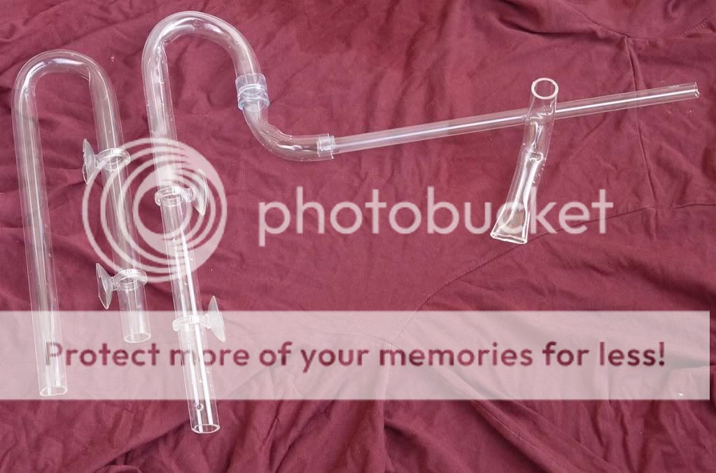 Връзката м/у 2-та накрайника е от прозрачен маркуч.И позволява доста по-голяма свобода при нагласянето на потока в аквариума ,отколкото ако беше направено всичко от едно парче тръба ;-)