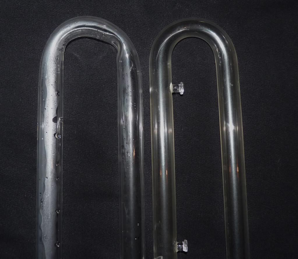 Купих си прозрачни акрилни тръби,килограм сол  :-D и взех от приятел пистолет за горещ въздух .Отрязах едно парче от тръбата,запуших единия край,напълних тръбата плътно със солта,запуших и другия край и започнах да нагрявам тръбата.Въртях ,за да нагрявам отвсякъде.Солта се слага ,за да не се слепи тръбата по време на огъването.Не се мъчете да огънете само в една точка-няма да стане.С малко търпение  сътворих това- от дясно е оригинала/стъклен/