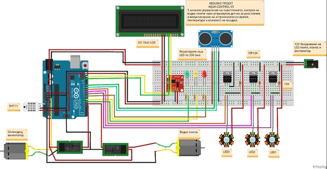 Здравейте. От близо година се занимавам с акваристика.Всичко започна на шега с 30л. аквариум с няколко живородки. Оказа се че акваристиката е голяма краста и само цената на оборудването и теснотията вкъщи ме ограничават да се спра само до 4 аквариума :) Въпреки огромното ми желание да осигуря добри условия за живот на рибетата все още се случва някоя да обърне корема :( . Желанието ми да направя хабитата в локвичките максимално близък до естествения за рибките както и да намеря начин за по-лесна смяна на водата се запознах с един страхотен оупън сорс проект а именно ARDUINO. Идеята е хора които никога не са се занимавали с микроконтролери и електроника бързо и лесно да създадат свои проекти благодарения на огромното количество споделена информация от други ентусиасти и не на последно място заради достъпният език чрез който се програмира микроконтролера. Всичко това е необходимо за да могат да се създават автоматизирани устройства които всъщност управляват процесите в аквариумите ми :)