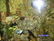 Варианта само с цименти пясък беше по удачен. В този аквариум имаше само дребни цихлиди.