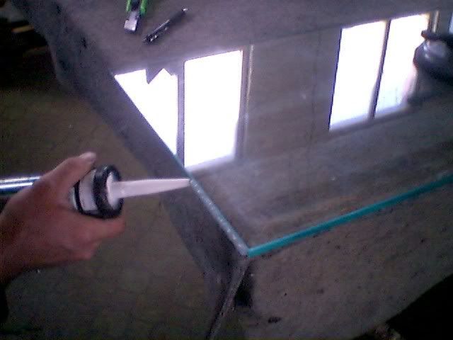 Махането на излишния силикон не става с макетно ножче . Реже се 2см лента  от 2 или 3мм. стъкло, тази лента се реже на парчета от по двадесетина см. под ъгъл 35 - 40 градуса. Слагаме лентата на стъклото с острия ръб към силикона, и приплъзваме. Така излишния силикон се обира идеално, само с едно движение и не може да се развали шева , докато  макетното ножче може да отплесне и да влезе между стъклата.