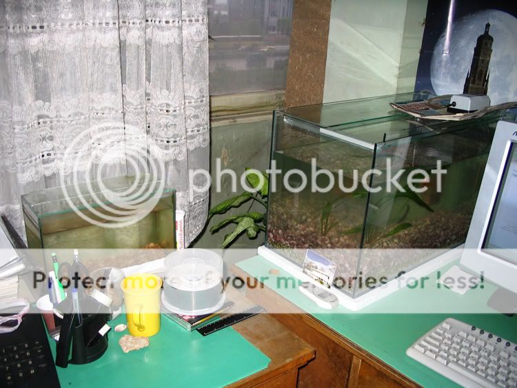 Ще гледам само нея. Имам някакви идеи за още 1-2, но това ще е най-рано след половин година. И така в близките 6 месеца, ще е само тоя рибок. А под стара вода и стар грунд имам предвид тези от стария аквариум, който е 10 литра.