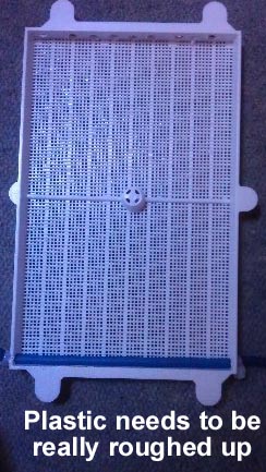 1)Use plastic canvas as the algae screen. Remember to roughen it up properly using a wood saw or hole saw. You can get plastic canvas at craft store (under sewing section) or sewing store or online at places like www.everythingplasticcanvas.com or ebay. Screen should look like this: