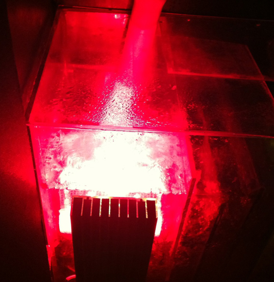водата първо да минава от задната страна (осветена от слънцето и мрежа м/у задното стъкло и съмпа), да влиза в него и да излиза вече отпред.