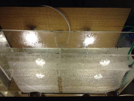 2011: Upflow style scrubber (work goods, easier to build and install on the glass; must be removed to harvest)