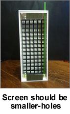 1)Use plastic canvas as the algae screen. Remember to roughen it up properly using a wood saw or hole saw. You can get plastic canvas at craft store (under sewing section) or sewing store or online at places like www.everythingplasticcanvas.com or ebay. Screen should look like this: