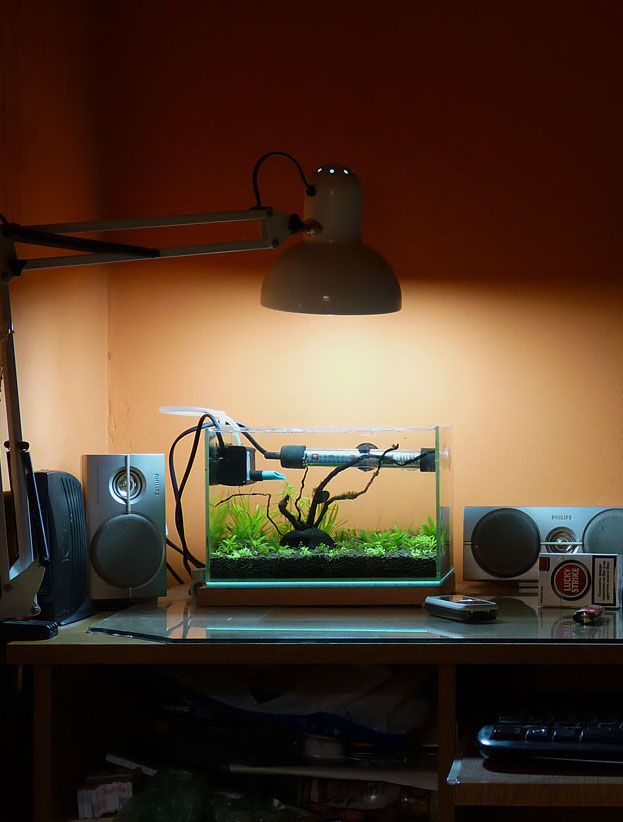 Пробвал съм с подобна лампа и беше изключително грозно. Затова питам дали ти използваш. Иначе да ... най лесно е с този вид осветителни тела. Аз обаче бих отделил 2-3 часа и няколко левчета отгоре за да го направя както трябва. Като се замисля ... хубавото на тези тела, които показваш е, че могат да се използват и след като захвърлиш малкия аквариум.  *dontknow*