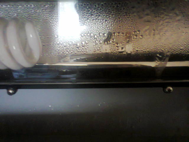 Здравейте, всички !!! Моля Ви за помощ или поне съвет - Преди няколко седмици си купихме аквариум - модел - HR420B, който е с вградена лампа на капака. След нужната подготовка си закупихме всичко необходимо  - дъно, растения, рибки.........и пуснахме аквариума в действие . Първите 3-4 дни всичко си беше наред помпата си работи , термометъра показва 26-27 градуса, рибките са щастливи, НО на 5-6 ден какво да видя - В КУТИЯТА , КЪДЕТО СЕ НАМИРАТ ДВЕТЕ ЛАМПИ ЗА ОСВЕТЛЕНИЕТО ИМА ВОДА - На другия ден водата вътре беше още повече и имаше ръжда изтичаща от фасонките на крушките. КАКВО СТАВА - НЕ ТРЯБВА ЛИ ЛАМПАТА ДА Е ВОДОУСТОЙЧИВА И ВОДОНЕПРОПУСКЛИВА ???????????  Откъде и как влиза тази вода ?  Едната крушка гръмна - сега свети само едната.......и вътре, отново има вода.........и не знам до кога........ПОМОЩ -МОЖЕ ЛИ ДА ГРЪМНЕ......ДА ОПЪРЖЕ РИБКИТЕ........ДА МИ ИЗГОРИ ИНСТАЛАЦИЯТА..........МОЛЯ ПОМОГНЕТЕЕЕЕЕЕЕЕ.........