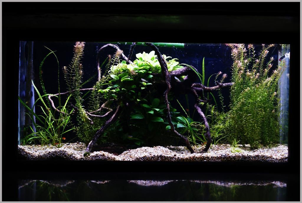 Промяната най-после дойде.  Изработи се проект за цялостна подмяна на осветлението, осигурихме 100 литрова бутилка за CO2, закупиха се нови корени тези дни ще купя тор. Рибата започна да се храни със Сера Сан и Тетра Дискус, тубифекс и Сера Випан. Изобщо започнаха да се вслушват когато говоря и да се дават пари.