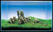 Просто си представи картинката... 2 големи камъка на дъното на аквариума, няколко растения на повърхността и 10-ина рибки плуващи между тези две "забележителности"...