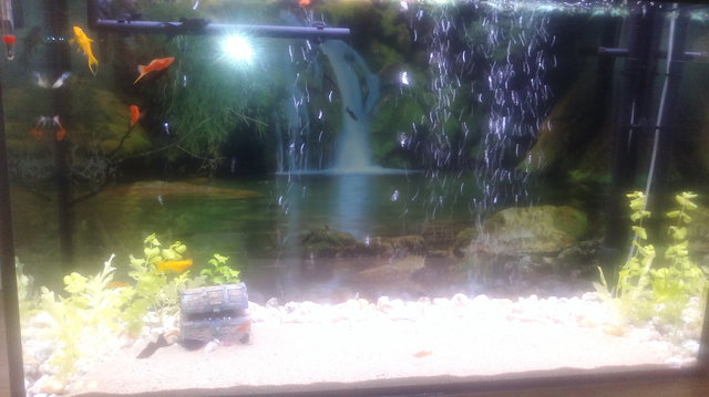 Имал съм аквариум с риби и растения/по времето на социализма ги наричахме водорасли/но беше малък  с гъба за филтър.