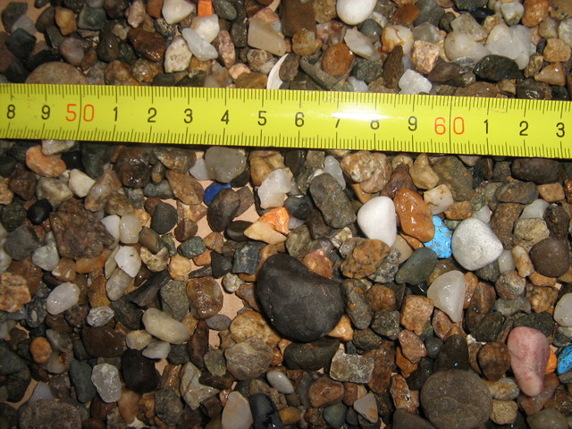 И да ти е харизан, махай го. Както сам си написал - после да ти е мирна главата. Ако искаш светъл грунд, вземи си от така наречения кварцов пясък (едрина 3-5 мм). Ако искаш по-тъмен и шарен грунд - в зоо магазините има речен пясък (едрина 2-3мм).