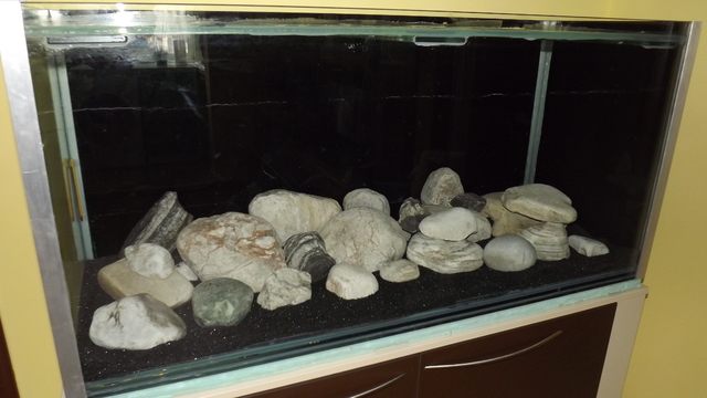 Имаш всички предпоставки да направиш добър цихлидарник.Важно е камъните да са еднотипни и достатъчно масивни,а този обем предразполага към сериозно количество риби,което от своя страна изисква добра филтрация.На твое място бих търсил камъни из природата,защото по магазините,особено тези които си описал са адски скъпи.Успех и чакаме снимки  :-) .