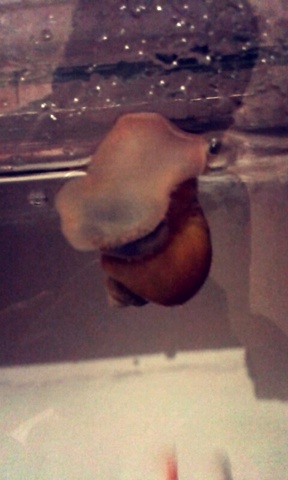 Пропуснах да кажа,че го имам от пролетта.Купих си два ,но след няма и месец единия умря и този остана самичък. Тези охлюви да не карат по девет месеца бременност  :-D Страшен майтап. Между другото днес погледнах яйцата и .... скоро ще има охлювчета.