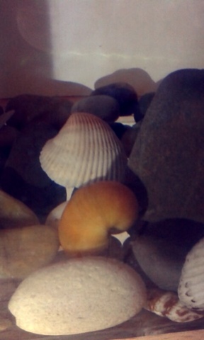 Това е моят аквариум скоро време ще добавя и малко растителност. Още съм начкинаещ. Имам въпрос: Зех си преди 2 дена 2 охлюва Ампулария и искам да ги развъдя как да ги различа кой е мъжки и кой е женски единият е страшно марзелив другият се мърда на някаде двата са по 4 сантиметра диаметъра. Не ги храня с специялна храна, ядът каквото давам на рибките те са 2 златни и 1 сом храня ги с едни червени гранулки или смелени изсушени водурасли. Ако снесът какво да правя с яйцата защото се опасявам че златните ще ги изядът. След колко време се излюпват? Имам и червенобуза костенурка около 15 см. дм. и много си цапа водата ако пусна при нея 2-3 охлюва ще оцелеят ли защото костенурката е лакума :)