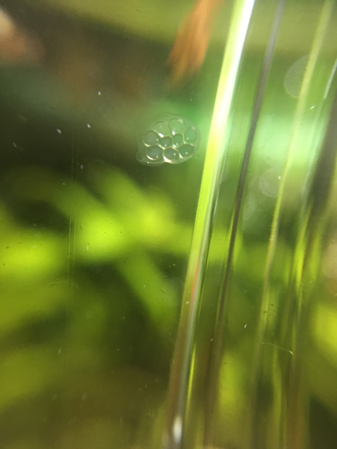 Здравейте, приятели и съфорумници! Първоначално да се извиня, ако темата не е за този раздел, но така заподозрях и поставих. От няколко дена наблюдавам едни петънца по стъклата на аквата и днес забелязах едно действително по-голямо. Стори ми се, че има отделни клетки с ядра, затова се замислих да не би  някой да оставя поколение и най-вече охлювите. Ето ви снимки: на по-голямото и на едно по-малко.