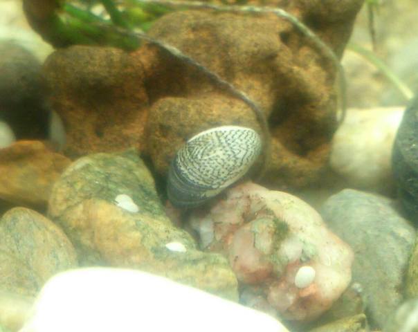 Това охлювче,си заслужава интереса да се проучи!!!Окраската е подобна на нетирина,само че по светли тонове!!!Ще чакаме резултати от аклиматизацията в аквата!!!Само да не докара някакви зарази,че като зная Дунава колко е чист,цяла Европа си излива гнусотиите в него!!!! :-)