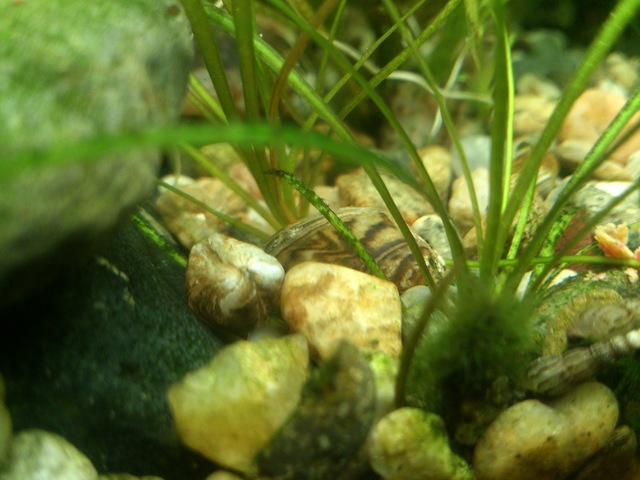 Същите охлювчета ,с тях пуснах заедно абсолютно същите миди,обаче те измряха за седмица макс.
