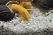 И аз имам 4 от тези охлювчета. Хранят се с каквото си намерят. Съжителстват с 6 Procambarus clarkii. От 2 месеца са заедно. За сега няма липси. И охлювите и раците не са на пълен размер, така че не е ясно какво ще стане когато раците порастнат. Може да съм им предложил много скъпа закуска.