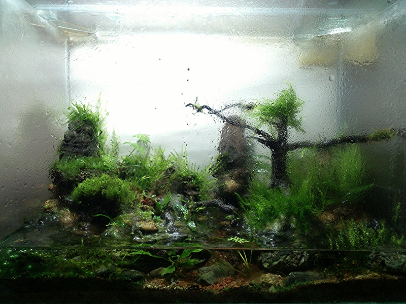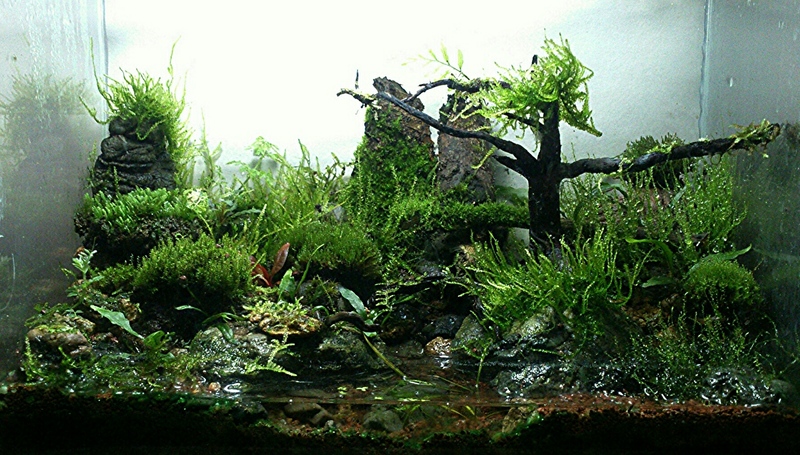 Според мен ако добавиш Bolbitis Diiformis поради факта първо, че е папрат джудже второ, че лесно минава в надводна форма  ( често го продаваме в магазините ни като сухоземно растение ) ще имаш възможност лятото да го напълниш с вода и да го запазиш . А за сухоземните мъхове според мен лесно ще минат в подводна форма ако не изгният ;)