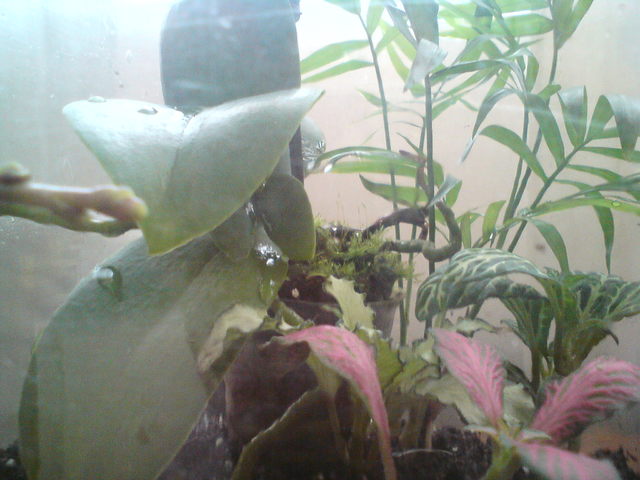 Това са стартираните преди месец два буркана с растения. Единият е с растения от аквариума, другия с цветя. Имах една мини орхидея в лошо състояние и реших да я спася и я затворих в буркана- за един месец пусна цветоносно стъбло и вече има няколко пъпки. Поливам я само нея на 10-тина дни със спринцовка другите растения съм ги поливал само при съденето.