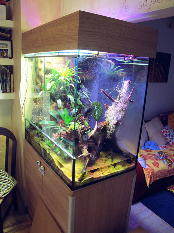 Палудариума е тип полуостров,с три виждащи се страни. Филтрацията е тетратек ех700,осветлението е 4хТ5 39вата,плюс 3 диодни крушки. Пурите са една гролукс,една 830,и две 840.Крушките са с червени и сини диоди.