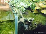 Ето и снимки на жабоците. Смених грунта с бял, защото жабите потъмняваха за камуфлаж при тъмния грунт. Не изглежда много естествено, но поне мога да се радвам на красивите цветове на скокльовците  *YAHOO*